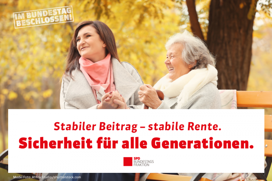 Die Stabilisierung und Sicherung der gesetzlichen Rente als grundlegende Säule der Alterssicherung für die Beschäftigten ist ein zentrales Anliegen der SPD-Fraktion. Darum werden wir SPD-Abgeordneten weiter dafür kämpfen, diesen Weg fortzusetzen und das Rentenniveau bis 2040 zu stabilisieren.